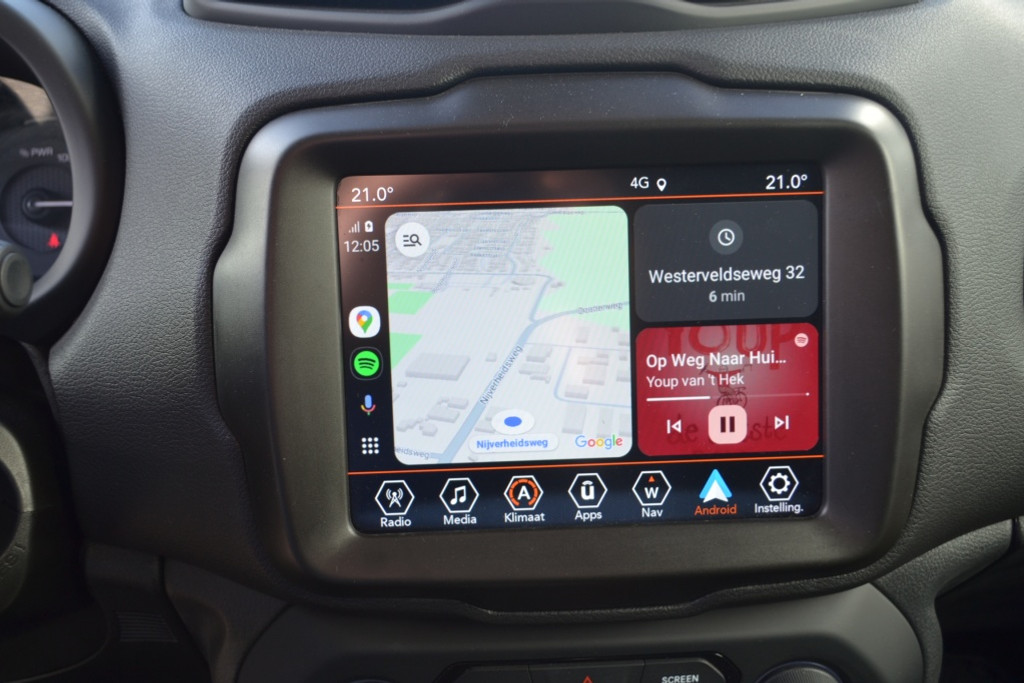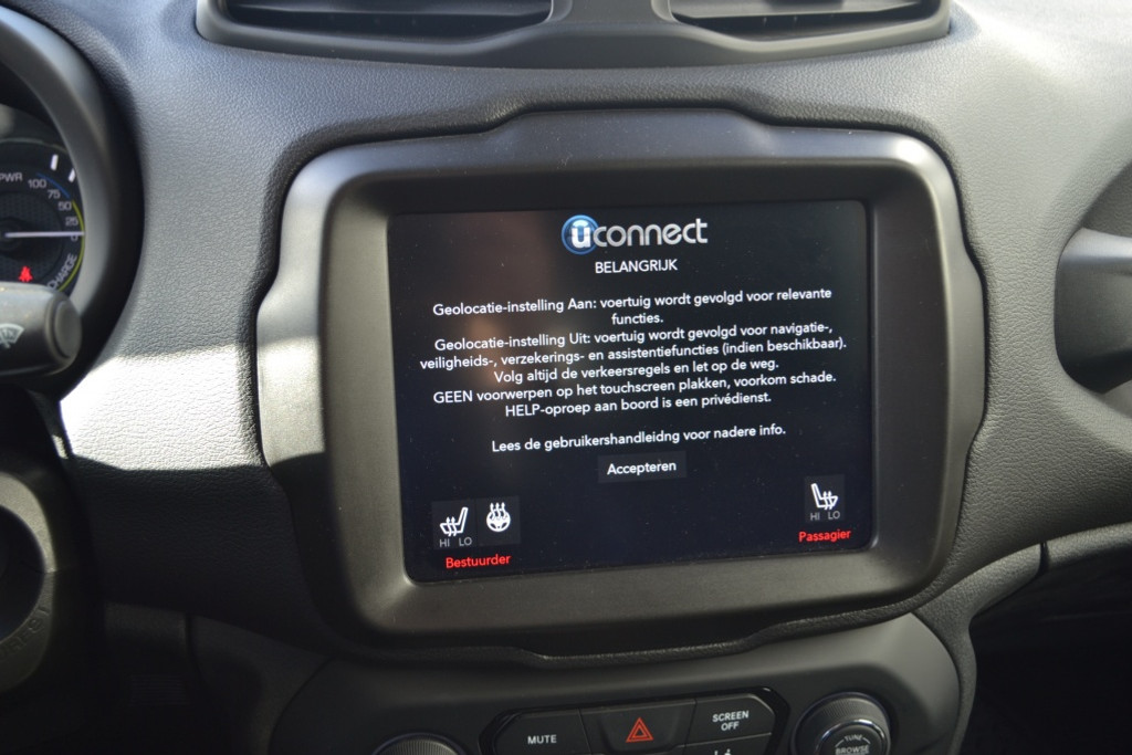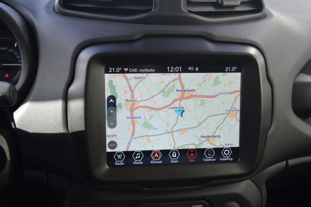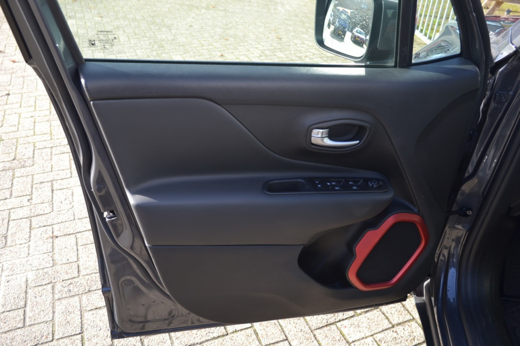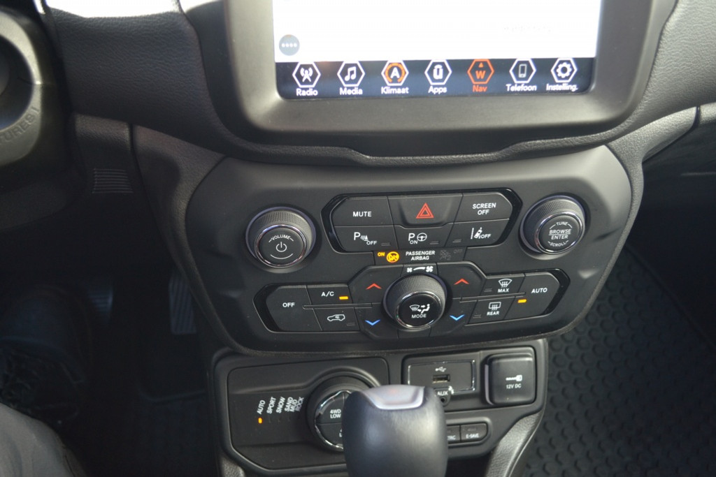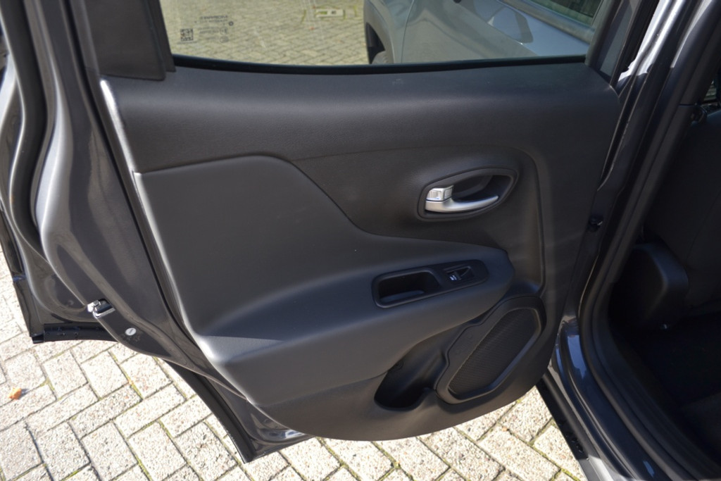 Geen nekkramp of spiegelwerk meer bij het achteruitrijden: de achteruitrijcamera kijkt en ziet alles! Adaptive cruise control is een comfortabele en veilige optie. Het systeem reguleert de snelheid en houdt automatisch afstand tot uw voorligger. Dankzij Connected Services weet u precies waar uw auto geparkeerd staat. Ook andere functies, zoals bandenspanning en brandstofniveau, zijn via de app altijd onder handbereik. In deze Renegade vindt u schakelaars op het stuur om het navigatiesysteem te bedienen en het audiosysteem met DAB-ontvangst. Ook is de auto voorzien van automatische airconditioning. De uitrusting van deze Jeep is met regensensor en lederen versnellingspook behoorlijk compleet.