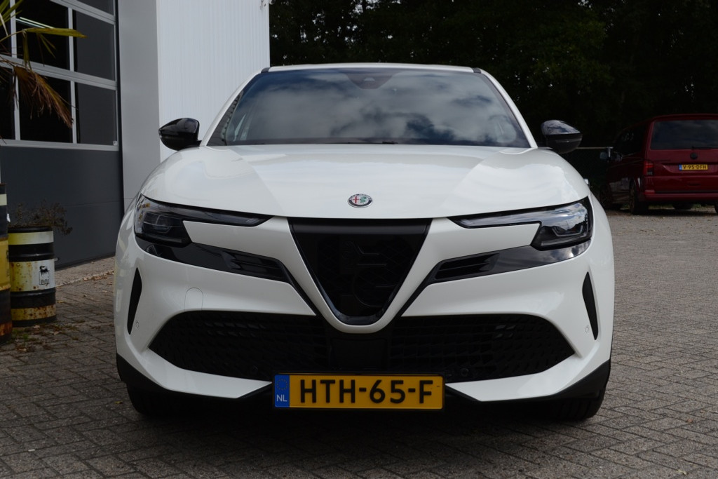 Snelheid en souplesse in stilte. Met deze Alfa Romeo Junior ervaart u alles wat elektrisch rijden plezierig maakt. De techniek van deze auto is radicaal anders dan u gewend bent. U rijdt zacht zoemend naar uw bestemming, de actieradius van de accu's is ruimschoots voldoende voor de meeste dagelijkse ritten. Deze auto uit 2024 heeft nauwelijks gereden, met een tellerstand van slechts 4387 kilometer. Een krachtige motor geeft deze auto zijn sportieve prestaties. U wilt comfort? Die is er, met het lederen interieur. U wilt gemak? Kijk dan even naar de elektrisch bedienbare achterklep. Donkere en koude maanden? U zit altijd goed dankzij de stoelverwarming. De slimme koplampen gebruiken de allernieuwste matrix LED-verlichting. Altijd maximaal zicht, nooit verblinding bij de tegenligger. In deze auto profiteert u onder andere ook van: 18 inch lichtmetalen velgen, halflederen bekleding, donker getint glas achter, in delen neerklapbare achterbank en LED-achterlichten.