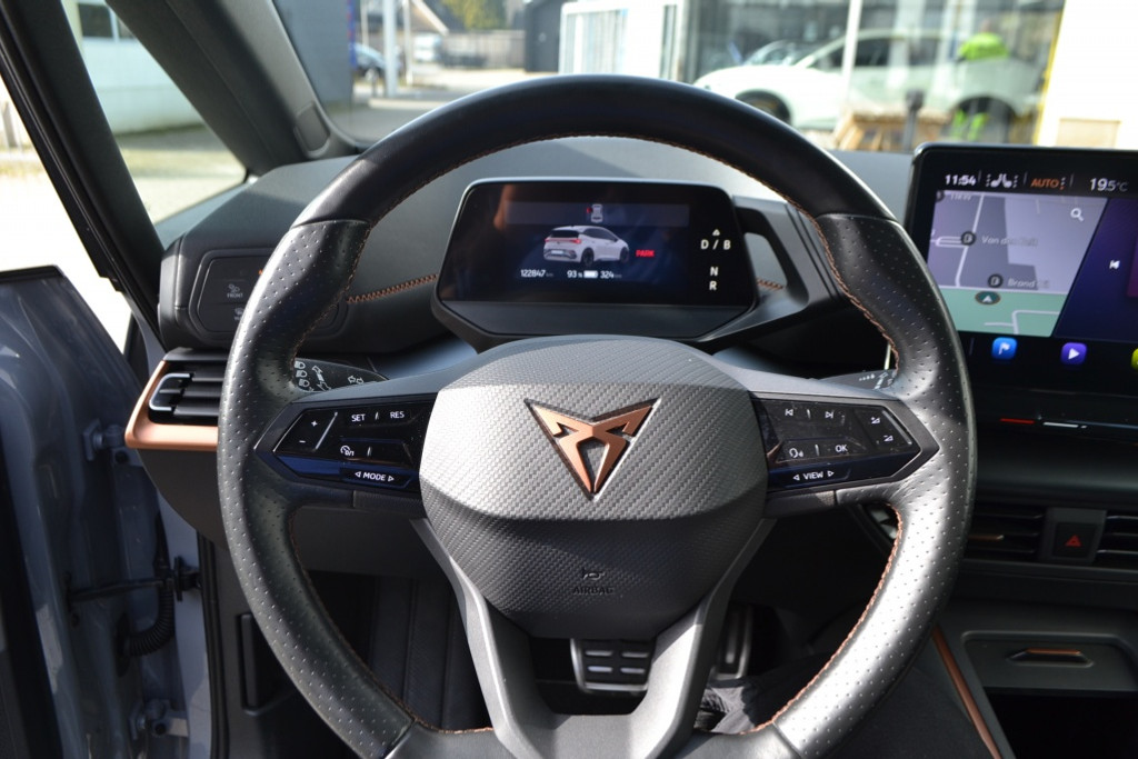 Alles vrij achter? De achteruitrijcamera laat het meteen zien. Ingericht op Connected Services, voor een nog veiligere en comfortabelere rit. Laat u onderweg niet afleiden, de bediening van het audio-installatiesysteem en ook het navigatiesysteem gaat met knoppen op het stuur en met spraak. Natuurlijk is de audio-installatie voorzien van DAB-ontvangst. Natuurlijk is er ook automatische airconditioning aanwezig. Het hoort bij een intelligente auto als deze dat hij zelf in staat is om zijn omgeving in de gaten te houden. Dat doet deze Cupra met een automatisch inschakelbare verlichting en een regensensor. Met adaptive cruise control, sportstuurwiel en automatisch dimmende spiegels is deze Cupra helemaal compleet.