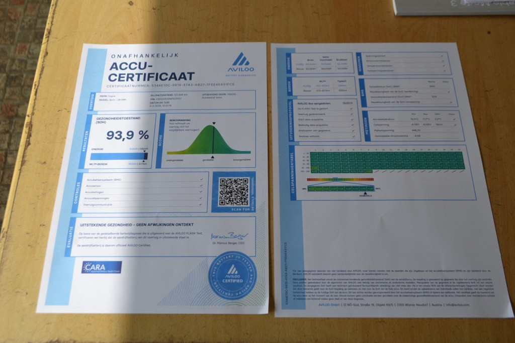 De State of Health ( SoH) van het accupakket is 93,9%. Zie Aviloo rapport.